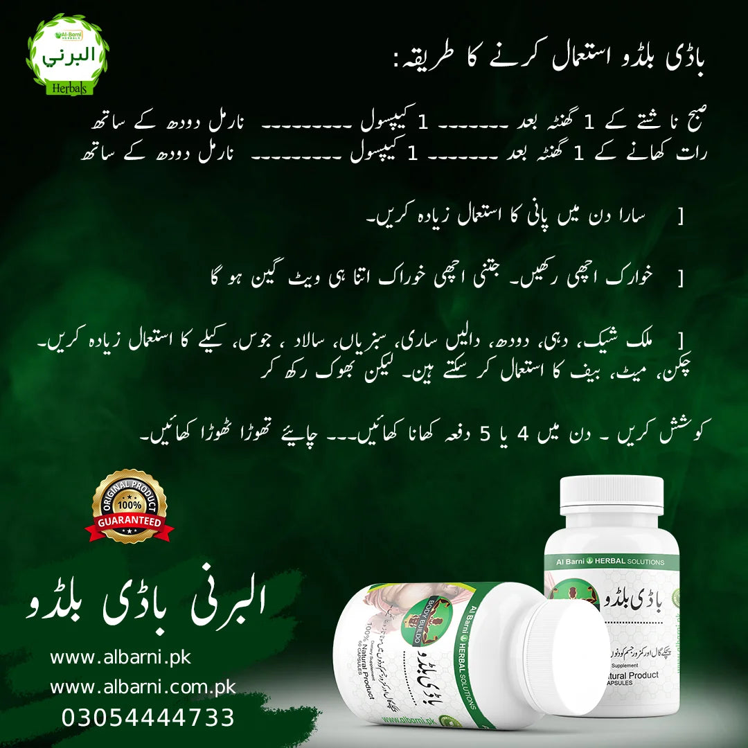 Hum aik aisi dunya mein rehtay hain jahan zahiry khoobsurati kafi matter karti hai. Is k sath sath hum ne beauty k unreal standards bhi set kr liye hain. Khoobsurti ki pehli alamat hai aik haseen-o-jameel chehra. Esi standard ko meet karne k liye Albarni laya hai aap k liye face ko mota karne ki tablets. Hum ne sal ha sal ki araq rezi k bad apne tajurbat aur khandani totkon se in tablets ko develop kia hai. Sath he sath in tablets ki development mein koi bhi chemical use nahi kia. Ye tablets totally organic aur herbal extracts se bani hain.